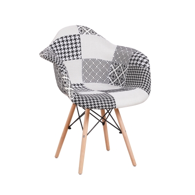 Patchwork Fabric Chair With Wooden Legs