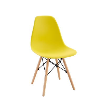 plastic chair with beech wood legs and metal wires