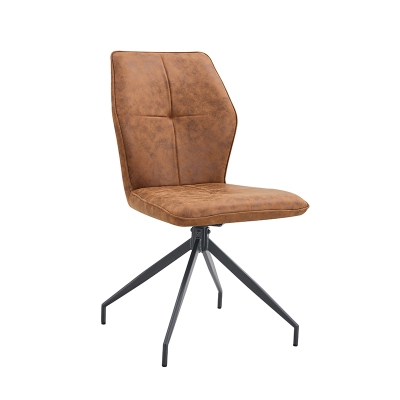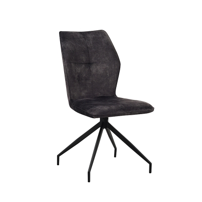 Chair seat with vintage velvet,seat can be 180° swivel with automatic return, backside with KD handle; KD metal legs black sand powder coated.