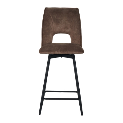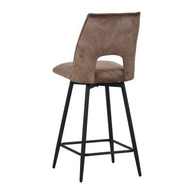 Metal frame seat with vintage style velvet, back has hollow design, seat can be 180°swiveling with automatic return, KD metal legs black sand powder coated.