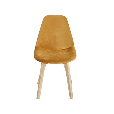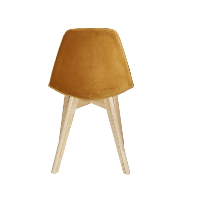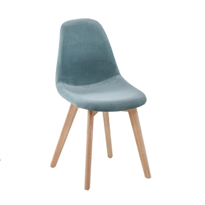 upholstered chair with velvet cover and wood legs