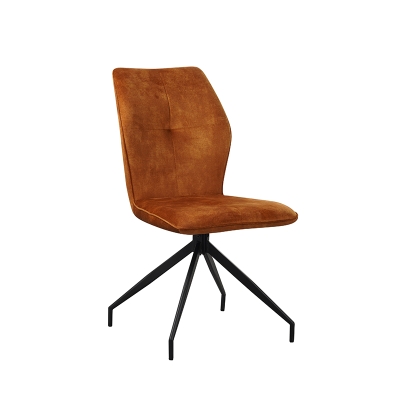 Chair seat with vintage velvet,seat can be 180° swivel with automatic return, backside with KD handle; KD metal legs black sand powder coated.