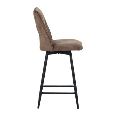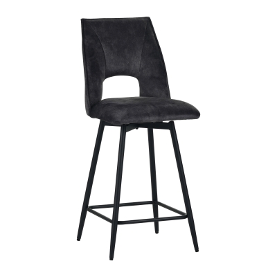 Metal frame seat with vintage style velvet, back has hollow design, seat can be 180°swiveling with automatic return, KD metal legs black sand powder coated.