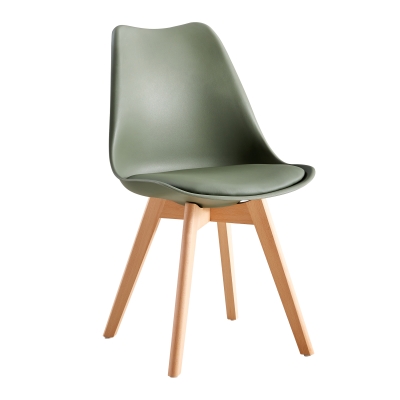 PP plastic seat with PU cushion, beech wood legs.