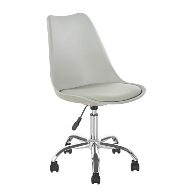 PP plastic seat with PU cushion, chromed legs with wheels.